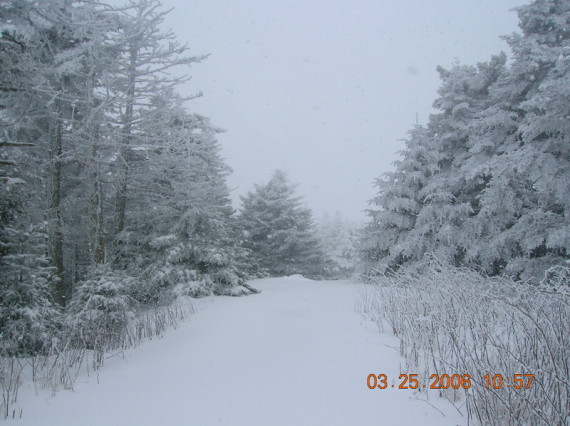 I said a prayer, put my hiking poles in my pack, and started my assault on Roan. I took one-step at a time, one white blaze at a time, and one minute at a time. I focused on the trail, as my entire world became the next few feet. I could only see ahead about twenty feet, which may have been a blessing. It seemed that every time I was about to give up hope another friendly two by four inch white blaze would appear and mark my way. I reached the summit, but didn’t believe I was there until I started a steep descent.