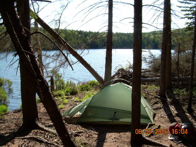 I set my tent up amongst the driftwood and a few white pine tree skeletons on a secluded beach, only feet from the water’s edge. I made sure I was out of sight of anyone that might pass by on the trail.